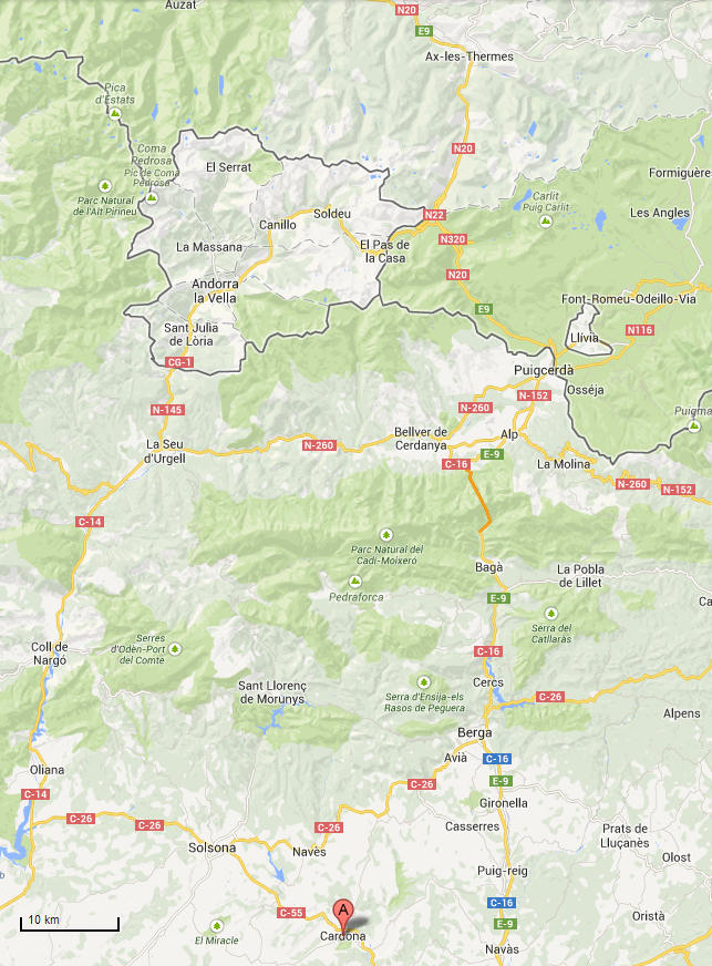 Ax-les-Thermes over the Pyrenees to Parador de Cardona, Spain